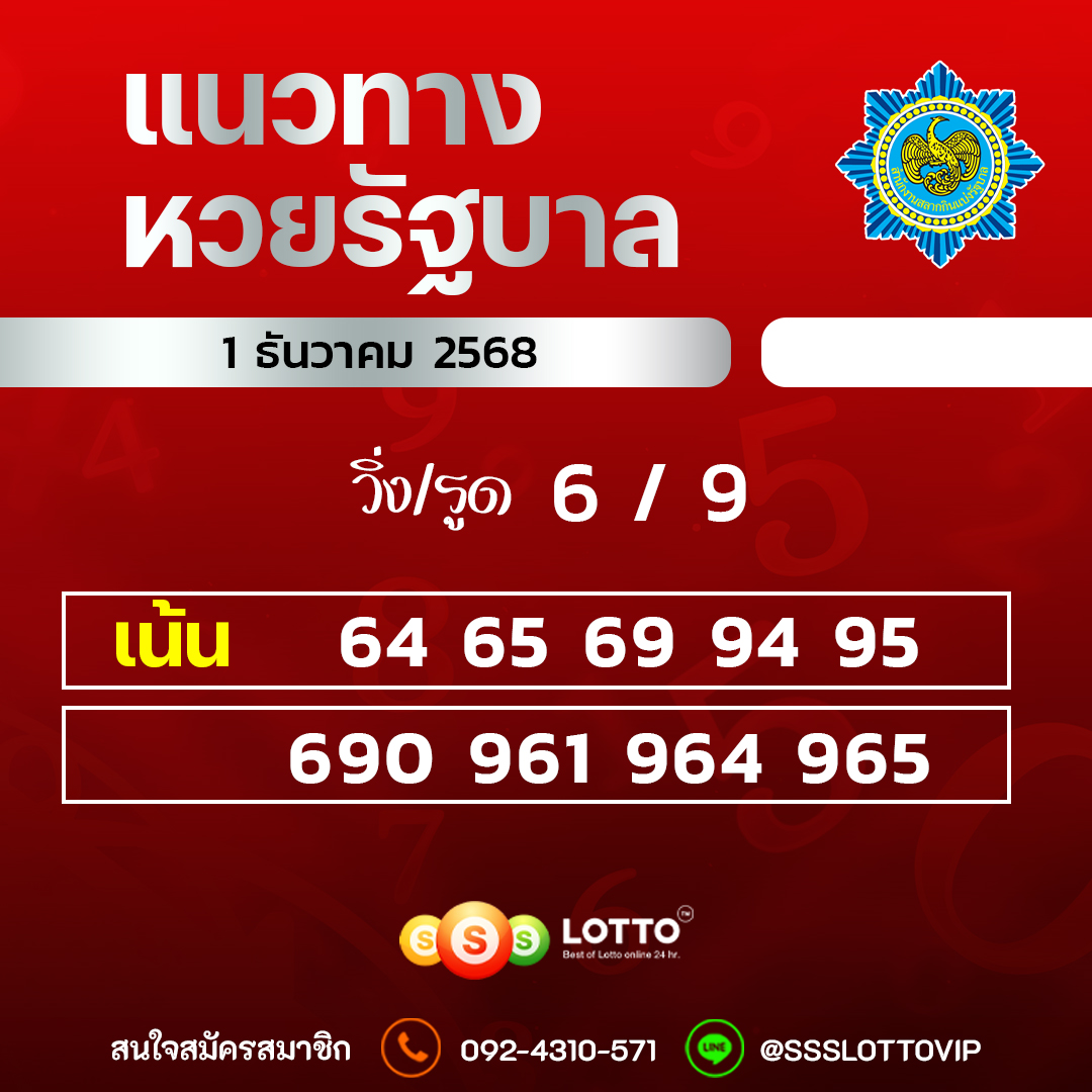 หวยรัฐบาล แนวทางหวยรัฐบาล งวดนี้ 01/12/68 หวยประเภทนี้เป็นหวยที่ออกโดยรัฐบาลไทย โดยการนำสลากกินแบ่งรัฐบาลหรือที่เรียกว่า ล็อตเตอร์รี่ มาจำหน่ายให้ประชาชนโดยทั่วไปได้ซื้อ เพื่อลุ้นรางวัลใหญ่ในแต่ละงวด โดยหวยรัฐบาลจะมีเดือนละ 2 ครั้ง ของทุกวันที่ 1 และ 16 ของทุกเดือน โดยก่อนที่หวยจะออกนั้น ก็มักจะมี แนวทางหวยรัฐบาล จากทั่วทุกสารทิศ ที่ต่างก็นำหวยของตัวเองมาใบ้มาแจกหรือนำมาขายเลยก็มี ให้นักเสี่ยงโชคทุกท่านได้หยิบจับตัวเลขไปซื้อเสี่ยงโชคกัน