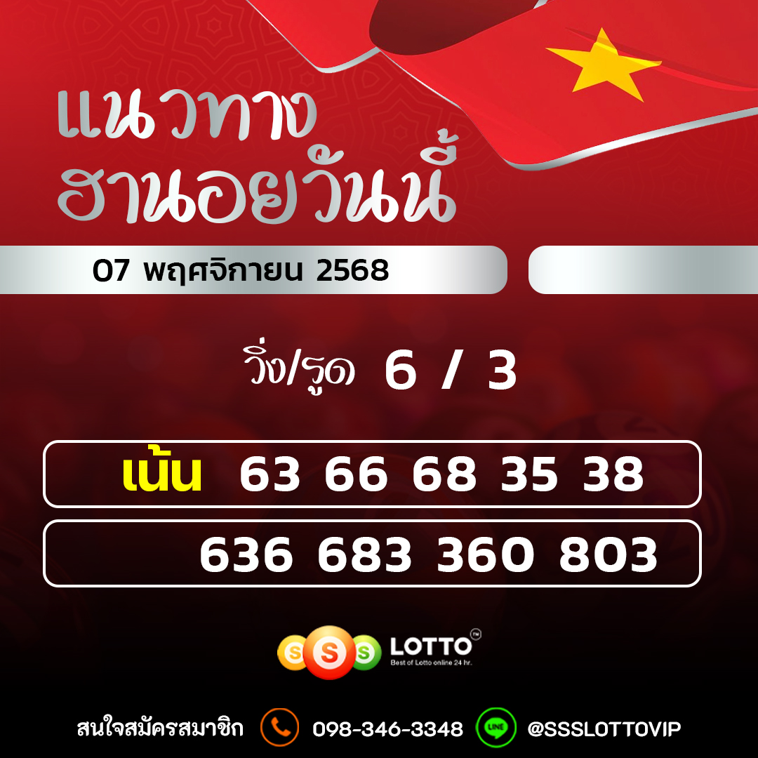 แนวทางหวยฮานอย 07/11/2568 วันนี้แม่นๆ แนวทางหวยออนไลน์ล่าสุด เว็บนี้ไม่มีโกง เเทงหวย หวยออนไลน์ Ssslotto