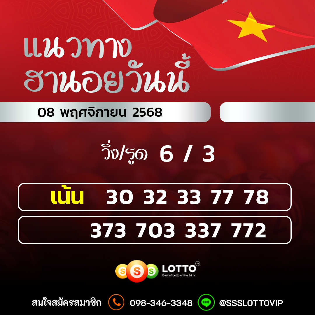 แนวทางหวยฮานอย 08/11/2568 วันนี้แม่นๆ แนวทางหวยออนไลน์ล่าสุด เว็บนี้ไม่มีโกง เเทงหวย หวยออนไลน์ Ssslotto