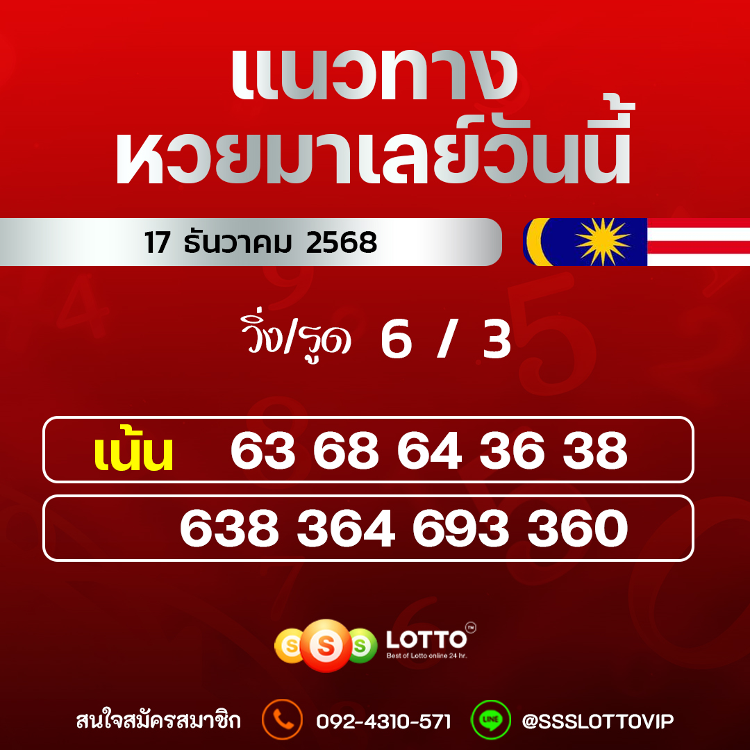 แนวทางหวยมาเลย์ 17/12/2568 วันนี้แม่นๆ แนวทางหวยออนไลน์ล่าสุด เว็บนี้ไม่มีโกง เเทงหวย หวยออนไลน์ Ssslotto